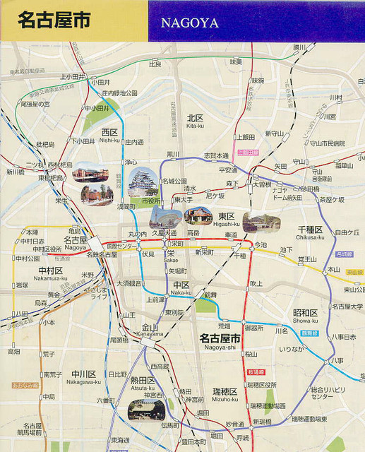 市區簡要地圖如圖所示,地下鐵主要為名城線,東山線,舞鶴線與櫻通線貫穿市區