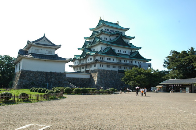 名古屋城為名古屋市重要地標。此城為德川家康於西元1609年所建,並於第二次世界大戰(1945)毀於戰火。目前所見為1959年重建之 城堡,為鋼筋混凝土建築。天守閣內部為文物博物館,介紹名古屋城的歷史,內部亦有先進之3D虛擬實境電影院,重現古代名古屋城的建 築。(相片中所見為大小天守閣)